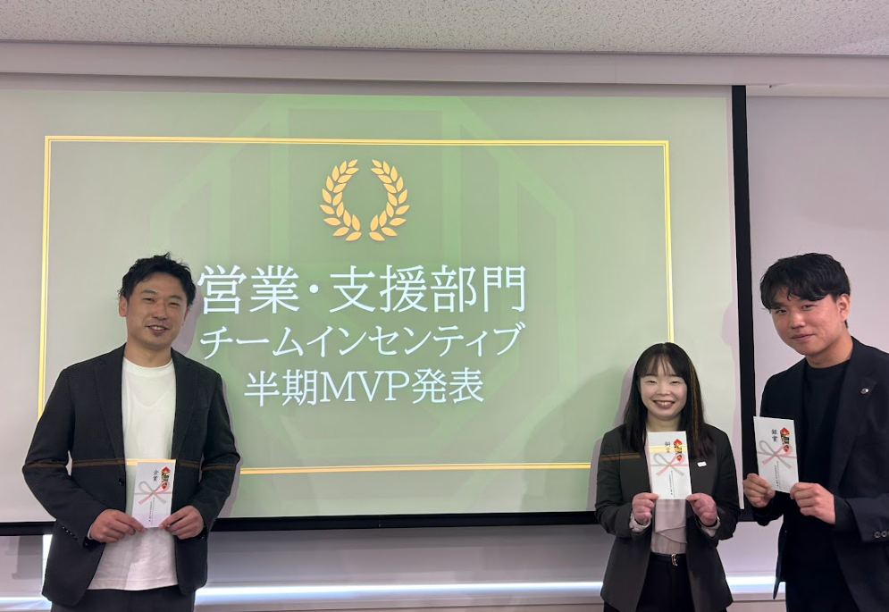 その後、お昼休憩の前にサプライズで「表彰パート」があり、営業の半期MVPや、チームインセンティブの発表でとても盛り上がりました!
